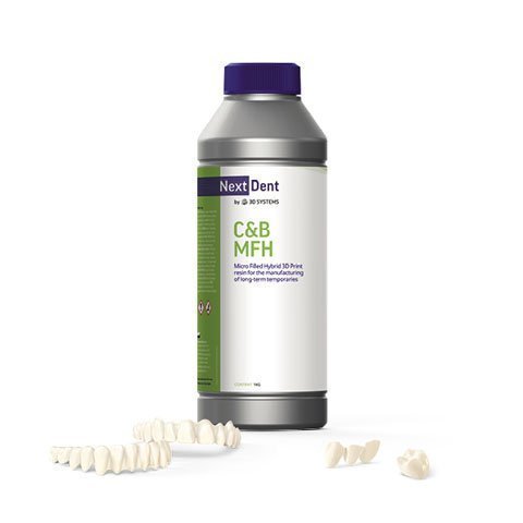 NextDent C&B Micro Filled Hybrid is a biocompatible Class IIa material* developed for crowns and bridges. The balance between inorganic fillers and the resin give the material its high strength and wear resistance.